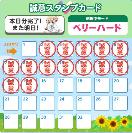 誠意スタンプカード毎日の様に押して来たんだけど、土曜日分もきちんと押してあるのに何故かカウントされていないんですが…orz